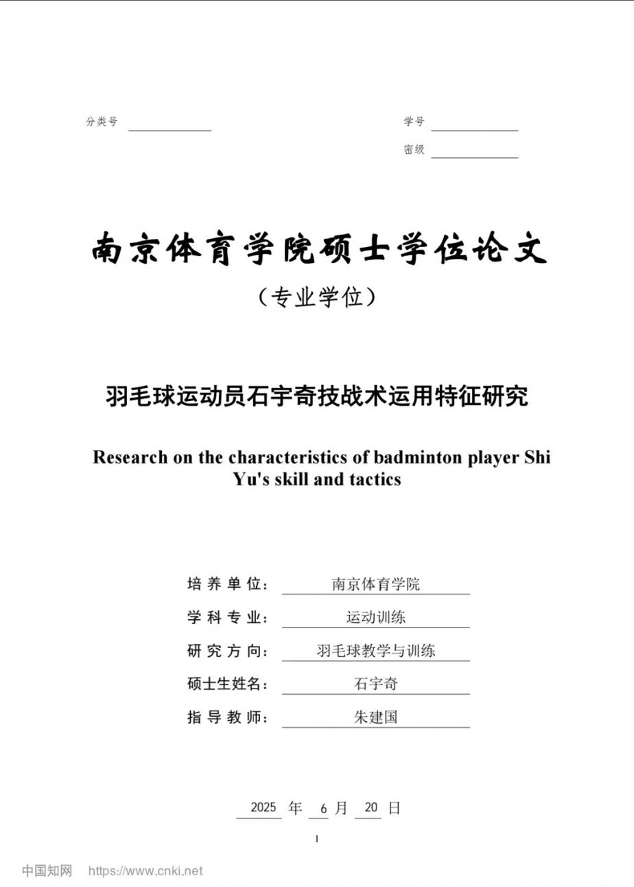 最近一篇知网论文《对石宇奇的技战术运用特征研究》走红羽毛球圈,而它的作者就是国羽现一哥石宇奇。