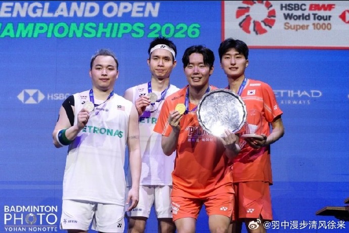 3月8日晚,2026全英羽毛球公开赛决赛,中国台北队夺得混双、男单两金。