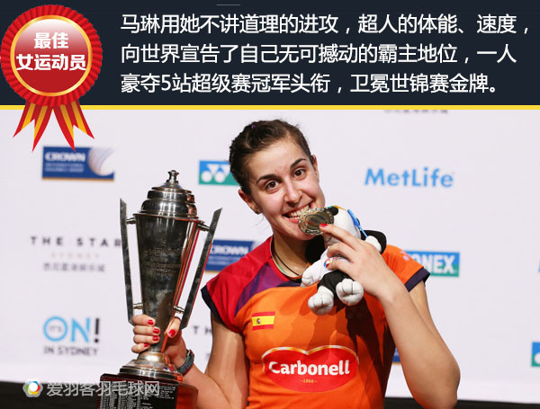 2015年女单赛场,百花齐放,马琳以强势的姿态脱颖而出。她用不讲道理的进攻,永不停歇的体能,无可比拟的速度,向世界宣告了自己无可撼动的霸主地位,她一人豪夺了5站超级赛冠军头衔,卫冕世锦赛金牌。出色的战绩,稳定的发挥也让马琳在世界羽联年度奖项的评选中,当选了年度最佳女运动员。