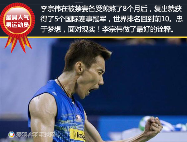 面对国家的期望、球迷的质疑、年龄的困扰,执着于梦想或坦然放手,他毅然选择了坚持梦想。在备受煎熬了8个月后,复出参加国际赛事就夺得了5个男单冠军,世界排名重新回到前10。是的,人生应该多一些坚持!他给予了广大球迷,在面对困难时,前行的勇气、乐观、执着及内心的力量!忠于梦想,面对现实!李宗伟做了最好的诠释。