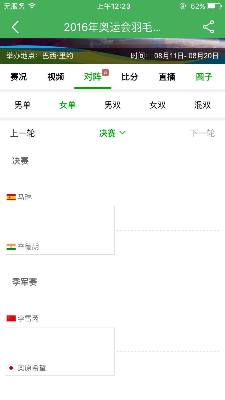 中国头号女单李雪芮以0-2(14-21、16-21)不敌两届世锦赛冠军西班牙选手马琳,而马琳闯入奥运会女单决赛这一成绩也是继2004年代表荷兰参赛的张海丽闯入女单决赛后欧洲女单选手的最好成绩。