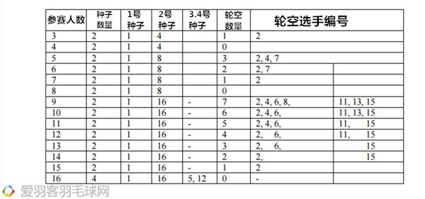 2.4 在参赛人数少于16时,只有2名种子选手。