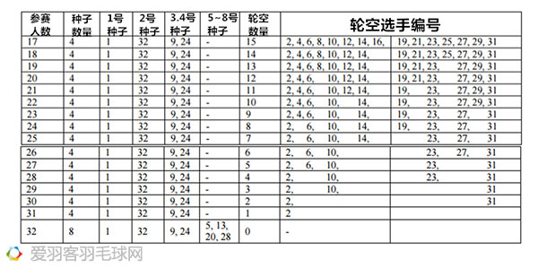 2.3 在参赛人数为16至31时,最多4名种子选手;