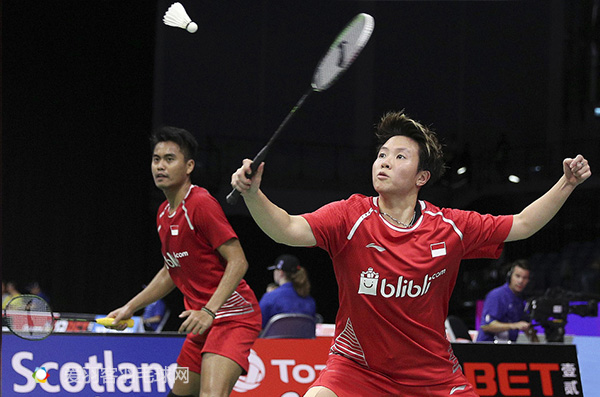 女双:陈贾夺首金,创国羽女双十四连冠。
