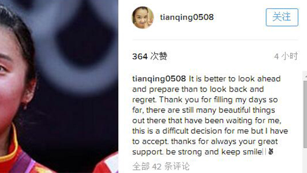 爱羽客羽毛球网24日讯,中国国家羽毛球队女双队员、奥运冠军田卿,在疑似其个人Istagram账号上发布一段长文: