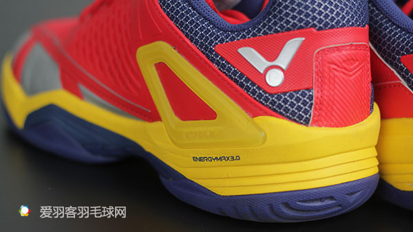 这双球鞋的减震是爱羽客菜师兄最喜欢的地方,整体脚感偏软。在运动中能保证球员非常好的舒适度。不要小看这个特点,羽毛球是一个跑动非常多的运动,一定的舒适感能够有效的节约体能。