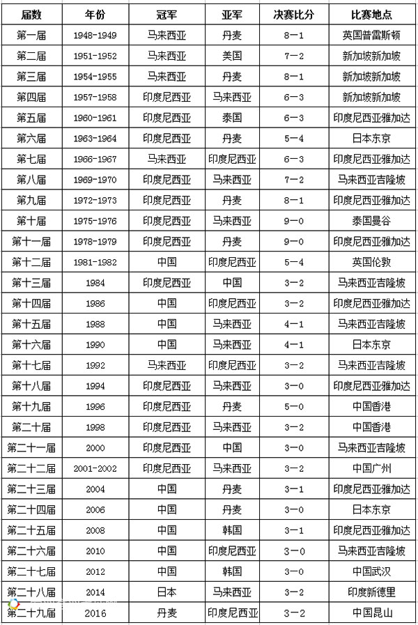 今天,2016年汤杯决赛落下帷幕。作为代表世界羽坛男子团体赛最高荣誉的比赛,关于汤杯,下面这些数字,你了解多少呢?