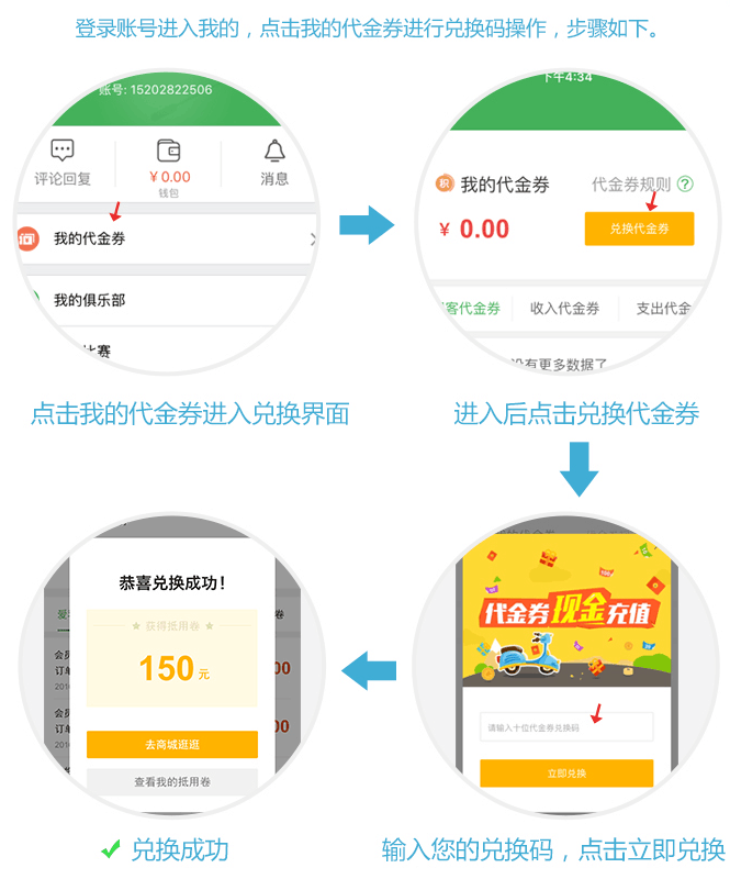3.该充值码有效期3年,并可以转送给其他朋友使用,中奖用户按以下步骤兑换成代金券后永久有效,但不能提现,可在爱羽客商城购物时使用。