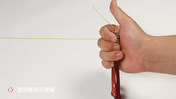 主要适用于天然肠线和仿肠线。如果球线在还没有穿的情况下,线就有很强的卷曲的状态时,可以将线做手工预拉(如图1-3),将线先拉直,再去穿线。这样在穿线时,球线在穿线时就不容易出现卷曲的情况出现。这种方法的优点是:不仅能避免球线出现卷曲的情况,还能减少球线的延展性,使球线的掉磅速度减缓。